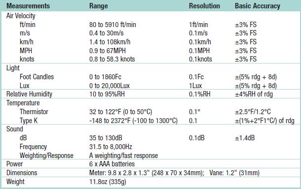 美國(guó)Extech EN300風(fēng)速/溫濕度/照度/噪音多功能測(cè)量?jī)x的技術(shù)參數(shù):