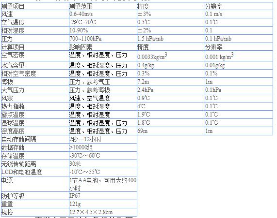 • 手持便攜式氣象站,具有數據存儲功能,數據制表功能。