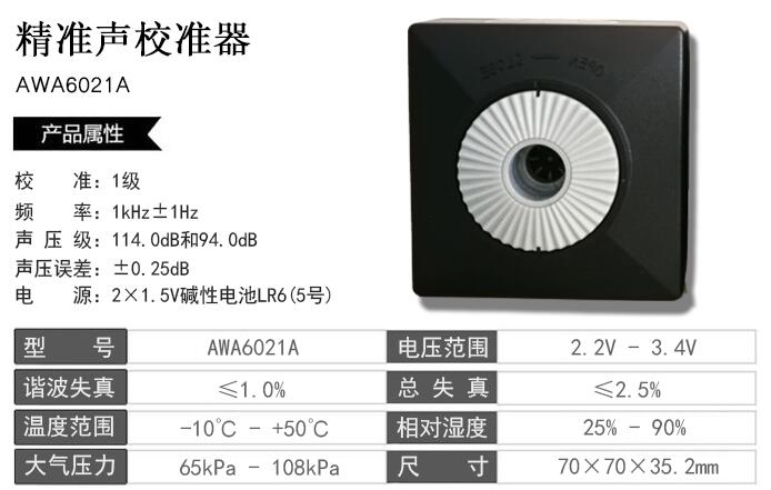 杭州愛華AWA6021A/AWA6022A聲學校準器的技術參數: