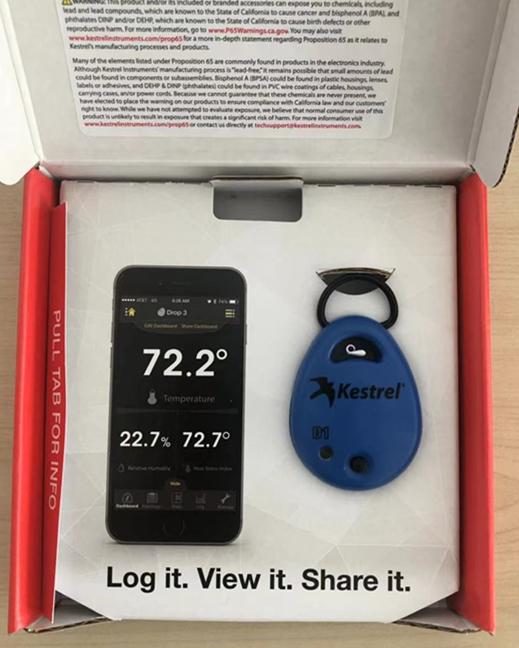 每個Kestrel D1記錄器的CR2032鋰電池可持續使用4個月,存儲超過13000組的溫度讀數。