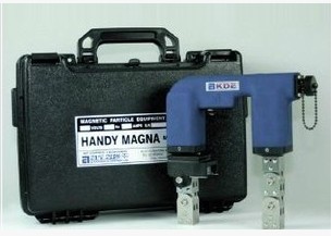 MP-A2L韓國Kyungdo(京都)磁粉探傷儀/手提式單磁軛的產(chǎn)品特點: 1.將磁軛電纜線一端連接在磁軛的電源插座上,另一端連接到22OV的電源上。 2.兩磁極平放在被檢件上,并施加一定的壓力 3.在已打開開關的狀態(tài)下,施加磁粉。(干,濕磁粉及熒光磁粉) 4.被檢面寬,則應作分區(qū)分段磁化,而且區(qū)與段之間要有一定的相互重疊的覆蓋面