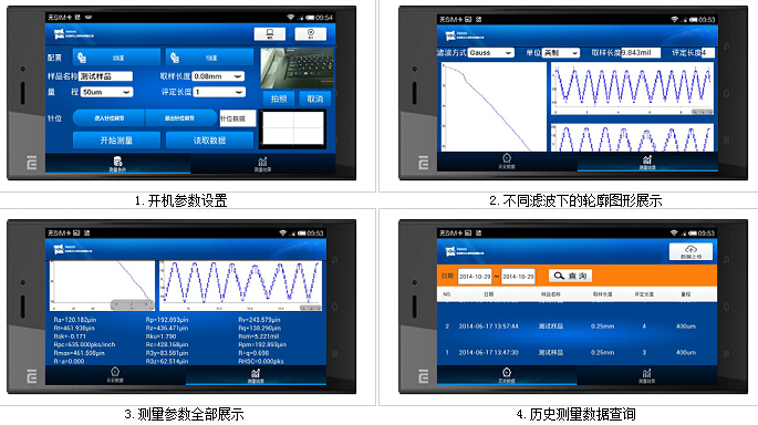 北京時代TIME3222手持式粗糙度儀觸摸屏,分辨率320×480,觸針位置顯示,采用WiFi技術實現無線傳輸,含小米手機,據選定的測量條件計算相應的參數,在液晶顯示器上清晰地顯示出全測量參數和輪廓圖形。